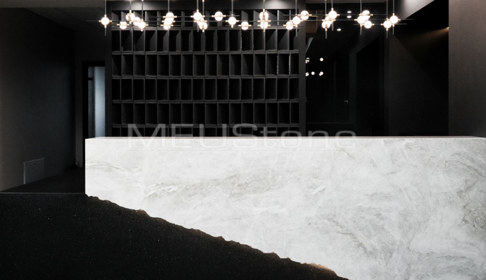 Głównym walorem jaki posiadają realizacje MEUStone to jakość i precyzja ich wykonania. Dzięki najnowszej technologii oraz wykwalifikowanej kadrze wszystkie realizacje takie jak blaty kuchenne, schody, elewacje, posadzki z marmuru są realizowane z dbałością o najmniejszy detal. Łączenie pod kątem 45 stopni daje nieograniczone możlwości na przykład przy pogrubianiu blatów kuchennych, lub wykonywaniu zejścia blatu do podłogi. Zobacz więcej...