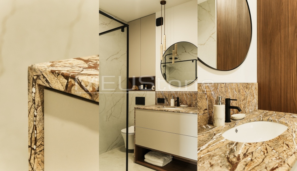 W przypadku blatów łazienkowych możliwe jest oczywiście dodanie takich elementów jak mydelniczki, pochylnie ociekowe czy półki marmurowe lub granitowe. Pięknie będzie wyglądał blat łazienkowy zarówno z ciemnego granitu, jak i delikatnego marmuru. Kamieniarstwo Budowlane Bielsko MEUStone montując tego typu elementy zawsze dba o elegancję i trwałość rozwiązań. Prawidłowo zainstalowany blat będzie nam służył przez lata. Dbamy też o to, aby klienci mieli odpowiednią wiedzę, jak dbać o swoje blaty łazienkowe. Ważna jest przecież odpowiednia impregnacja, jak i korzystanie z właściwych środków czyszczących.